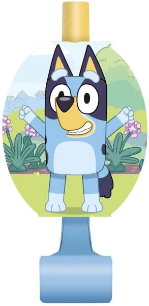 [16-Pack Bundle] Bluey Themed (Party Blowouts + Dinosaur Sticker Sheet)