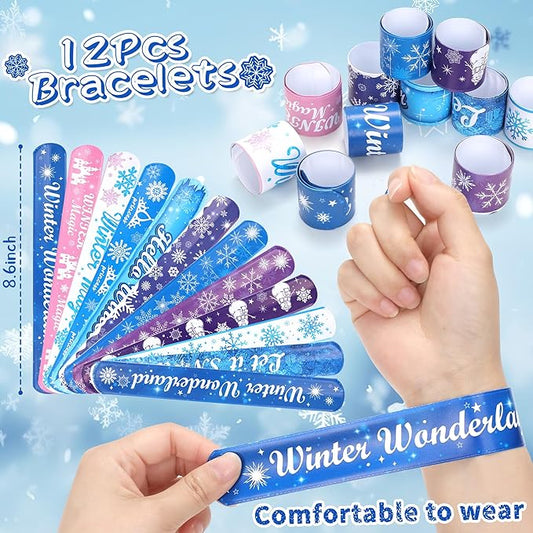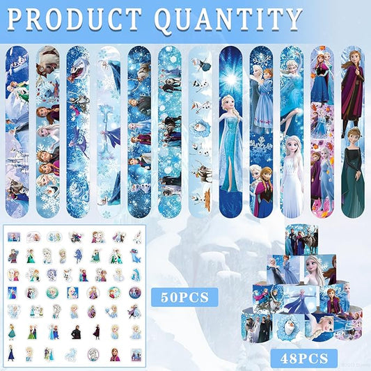 [48-Pack Bundle] Frozen Themed Slap Bracelets + Stickers