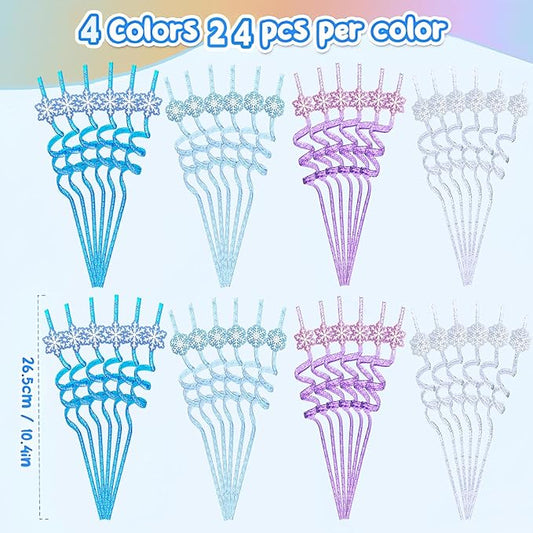 [24-Pack Bundle] Frozen Themed Glitter Reusable Plastic Straws Drinking Straws