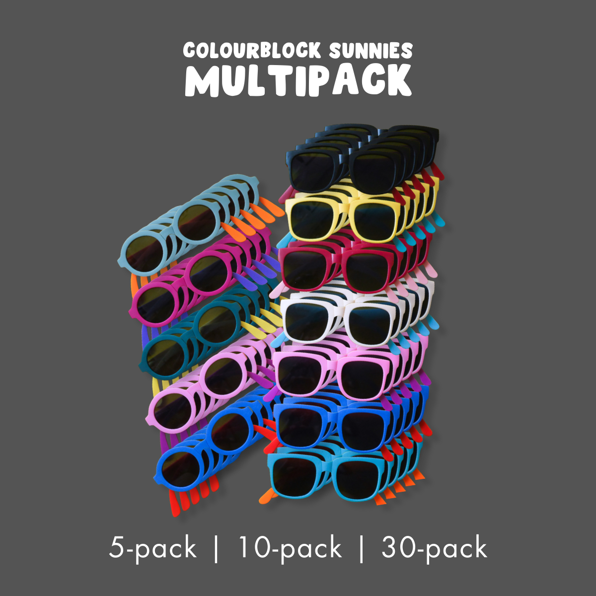 Keep little eyes shaded in style with our UV400 Colourblock Sunnies — durable, colourful frames that come with a matching hard case and cloth. Perfect for birthdays, school camps, or simply sunny weekends. Parents love them because kids actually wear them, and they last far beyond the party.