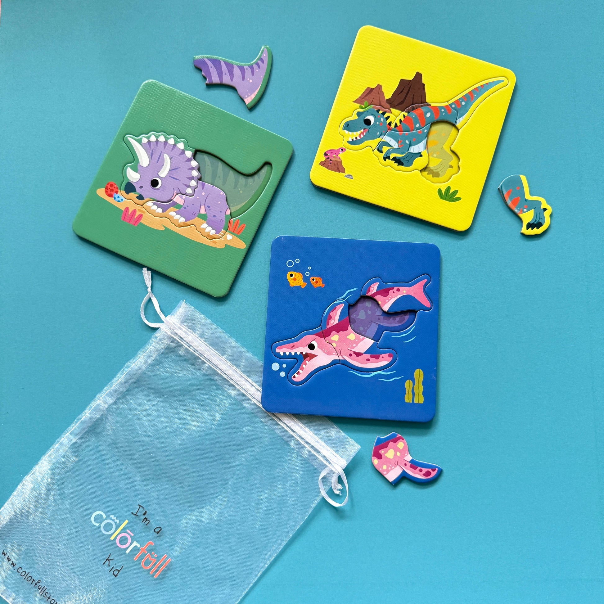 Unleash your child's love for dinosaurs with this Dino Assorted Puzzles Pack! Featuring vibrant, easy-to-handle puzzle pieces, this set is perfect for little hands learning problem-solving and motor skills. Each puzzle comes with adorable dino illustrations, designed to spark curiosity and creativity in toddlers.