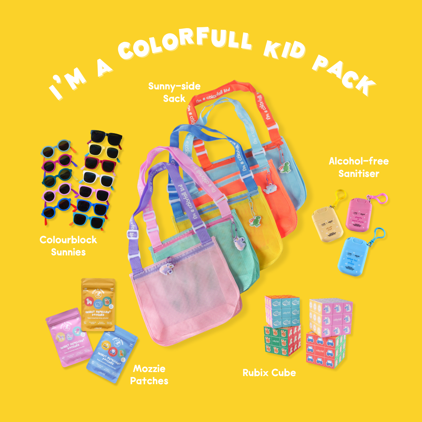 - 1 x Sunny-side Sack – breathable mesh crossbody bag in bold colour combos, easy to carry and easy to spot