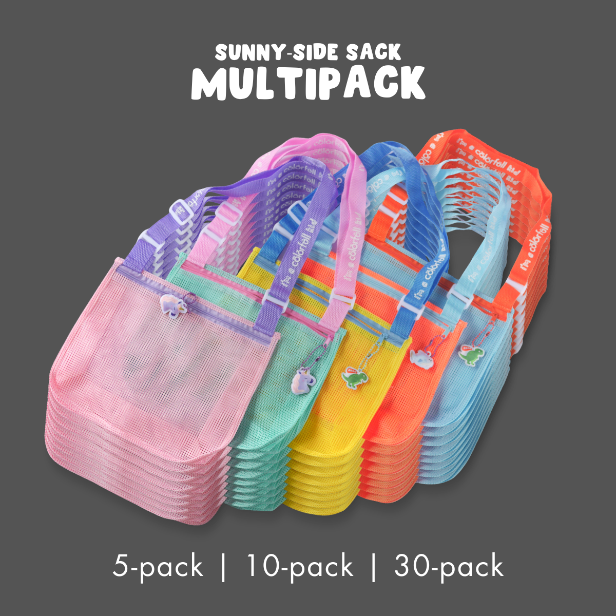 The ultimate kid-sized mesh crossbody bag — lightweight, breathable, and colour-blocked for instant fun. Perfect for carrying water bottles, snacks, or treasures from a day at the park. Unlike plastic goody bags, these are keepsake-worthy and practical for everyday adventures.